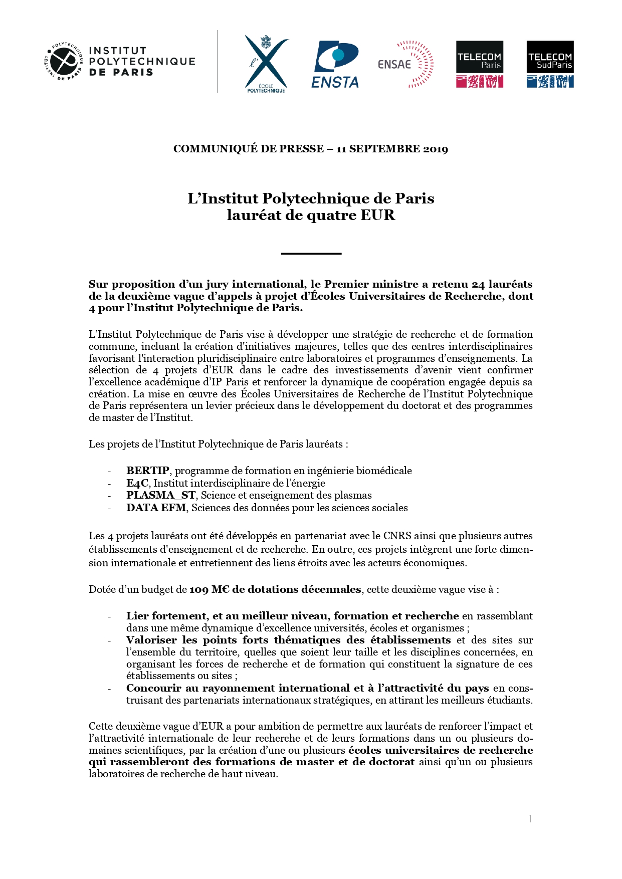 L’Institut Polytechnique de Paris lauréat de quatre EUR