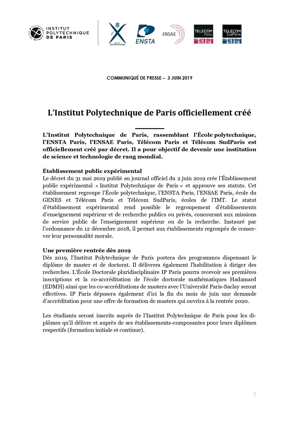 L’Institut Polytechnique de Paris officiellement créé